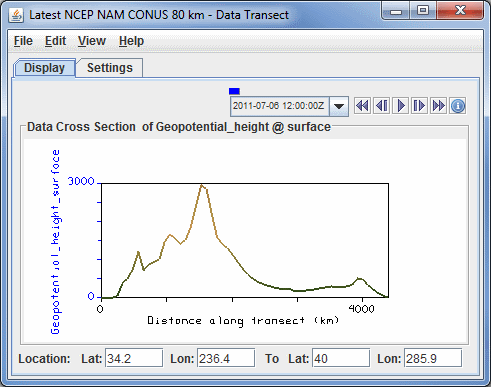The Data Transect controls are used to adjust data transect displays. The