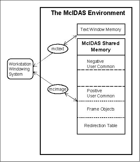 Now that you've seen McIDAS-X from a user's perspective, you need to understand how McIDAS-X operates at the system level. When McIDAS-X is started, it creates the environment in which it will run. In this section, you will learn about the system-level components of the McIDAS-X environment and how they fit together.
