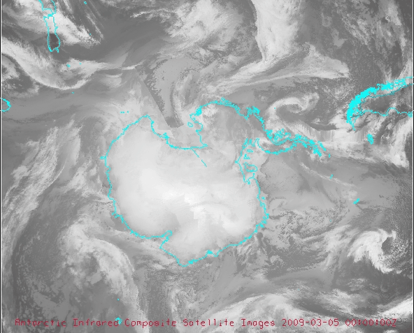 IR loop of Antarctic composite satellite images — a combination of geostationary and polar orbiting data. (Bundle)